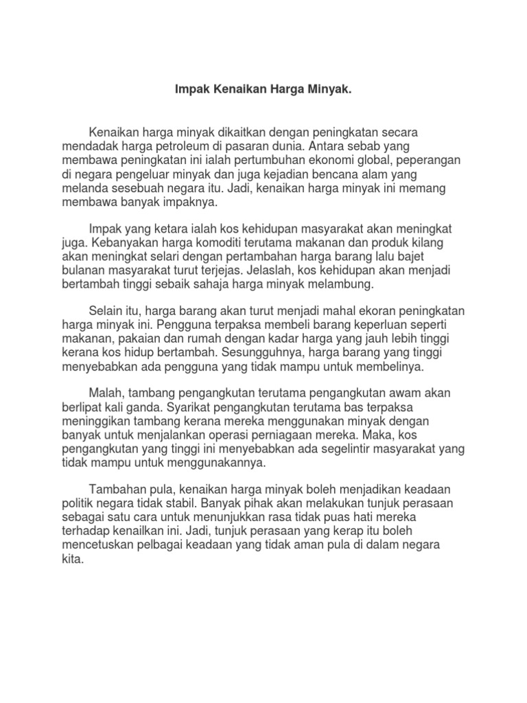 Contoh Karangan Kesan Kenaikan Harga Minyak Karangan Net
