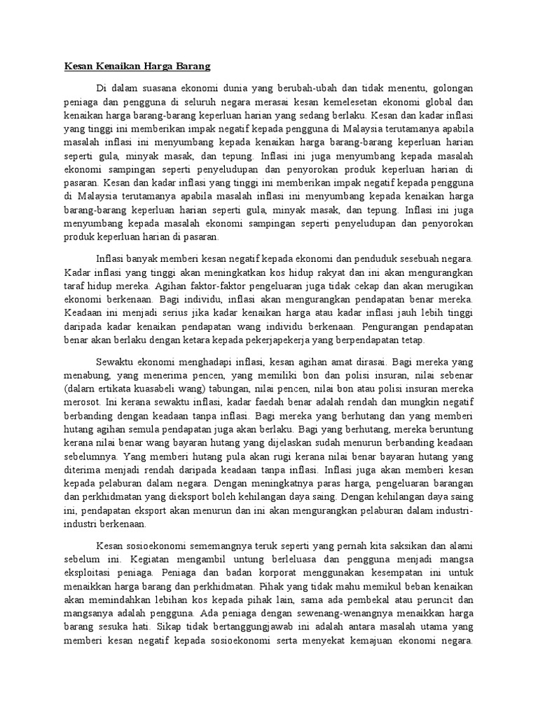 Kesan Kenaikan Harga Barang Pdf