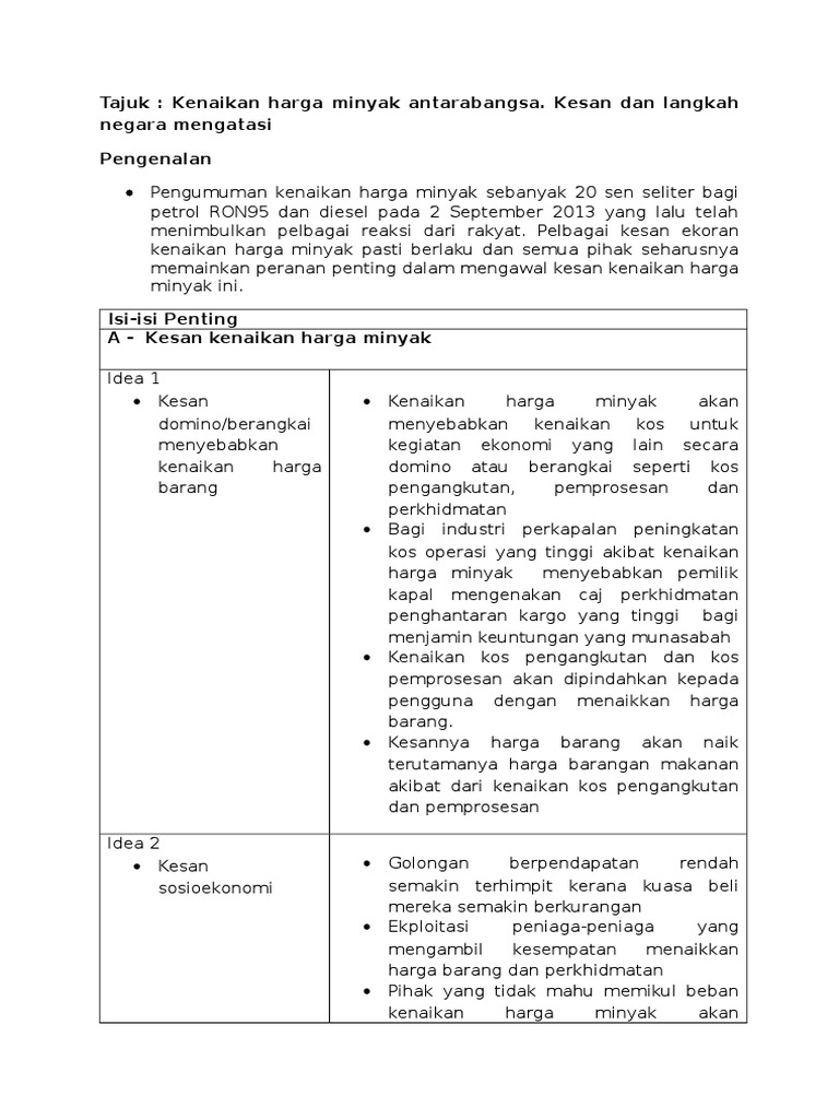 Kesan Kenaikan Harga Minyak Terhadap Masyarakat Pdf